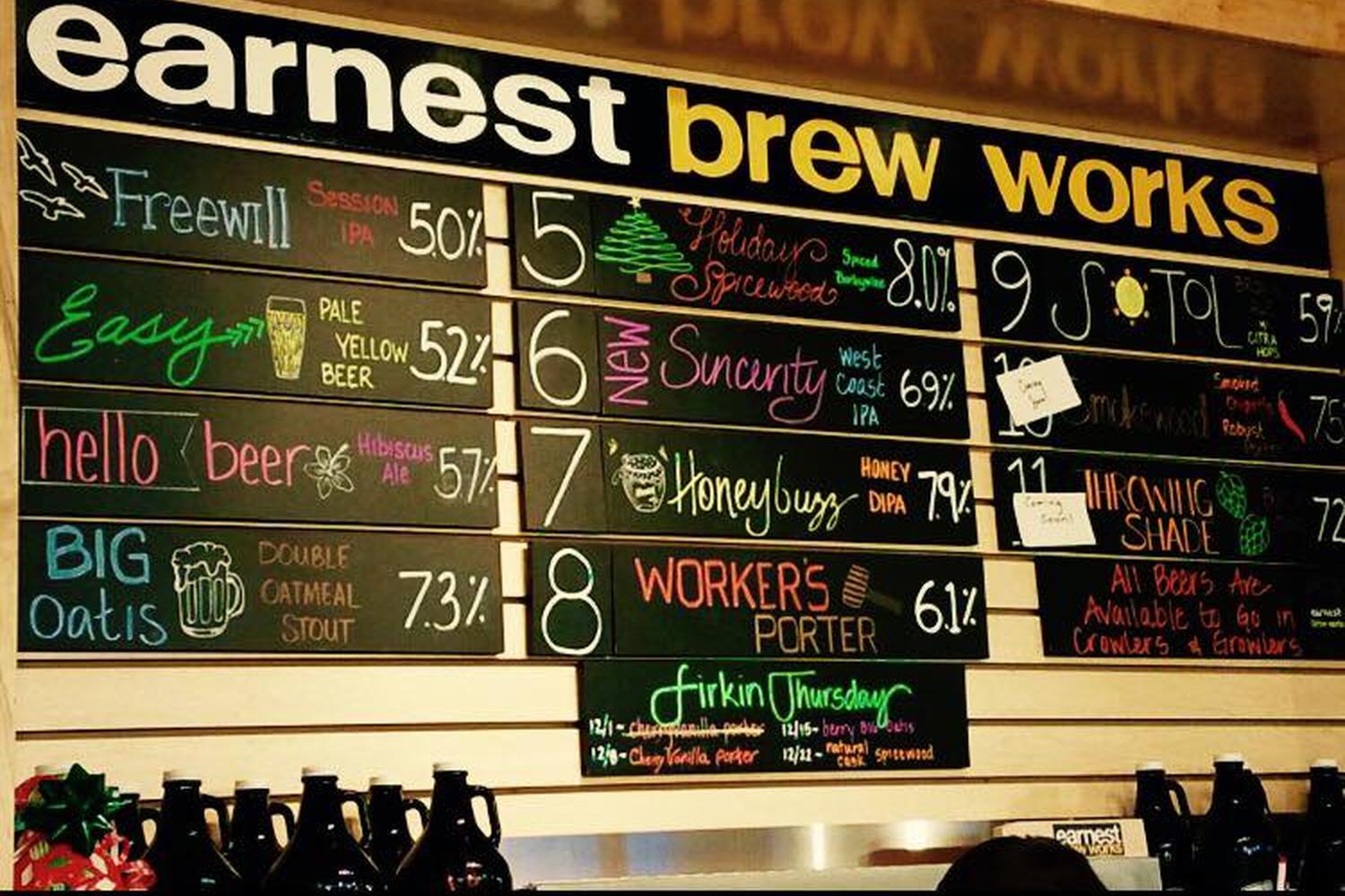 Earnest brew works Downtown features 12 taps of fresh local beer in a casual setting.